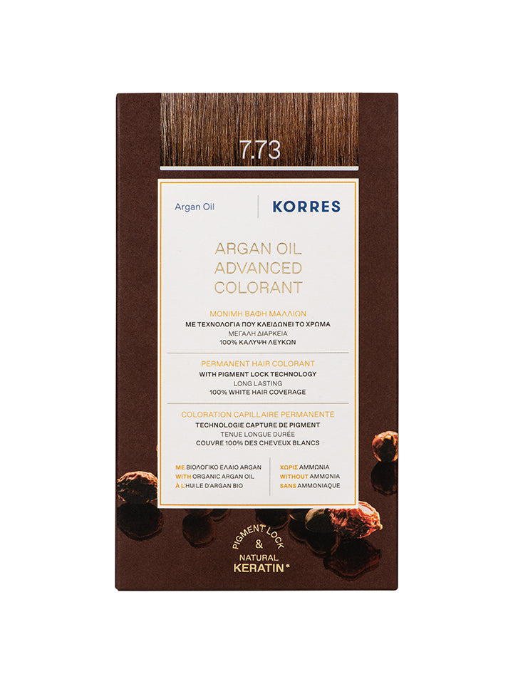 • Coloration Permanente Huile d’Argan 7.73 Doré Moca 145ml