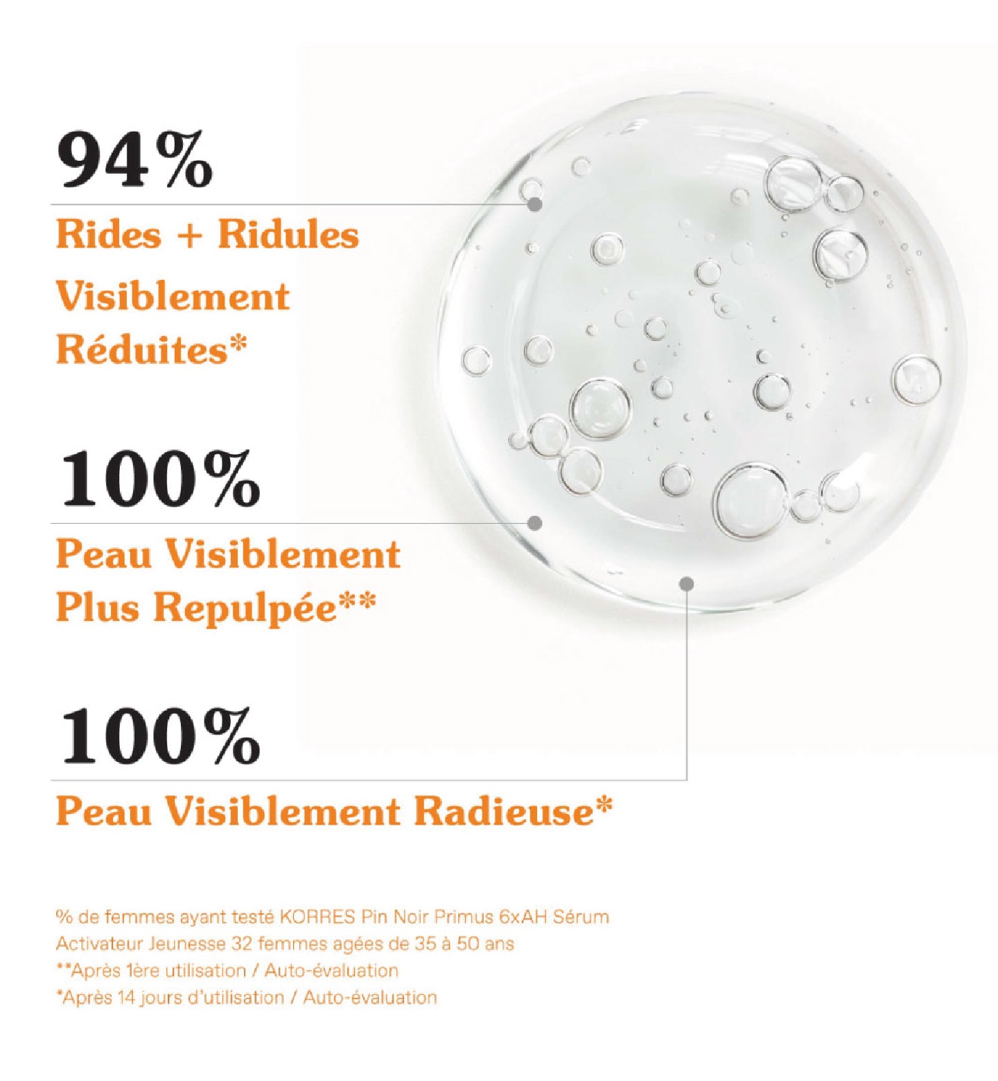 94% rides + ridules visiblement réduites*. 100% peau visiblement plus repulpée**. 100% peau visiblement radieuse*.