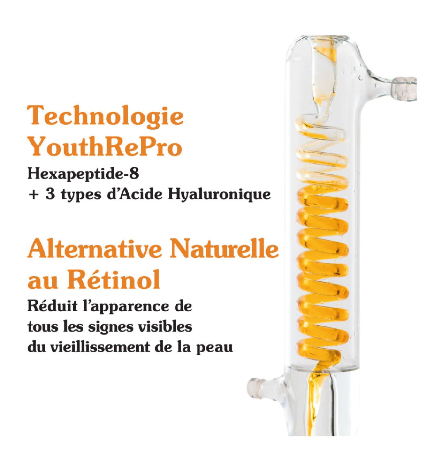 Sérum super-boosté avec 6 types d'Acide Hyaluronique + Hexapeptide-8 pour cibler les rides et améliorer l'éclat.