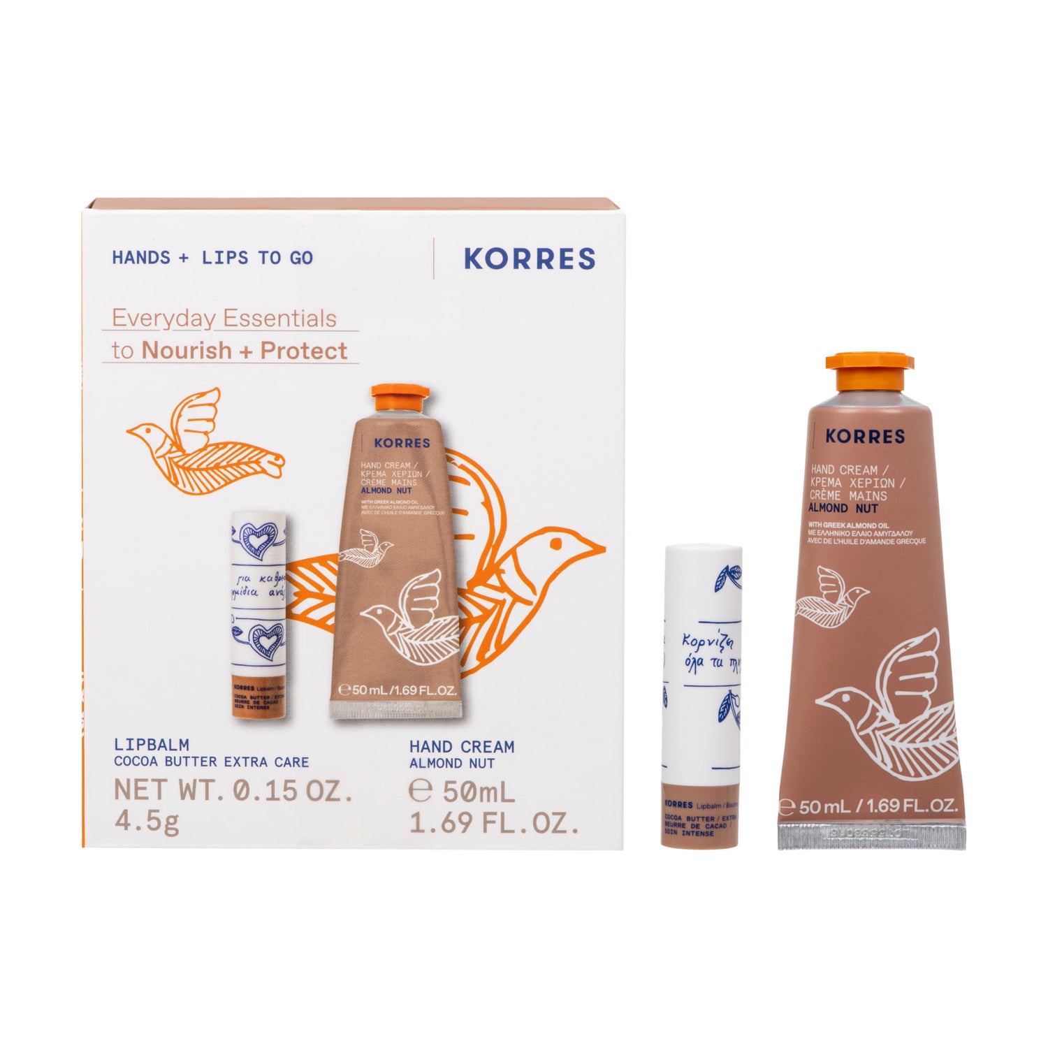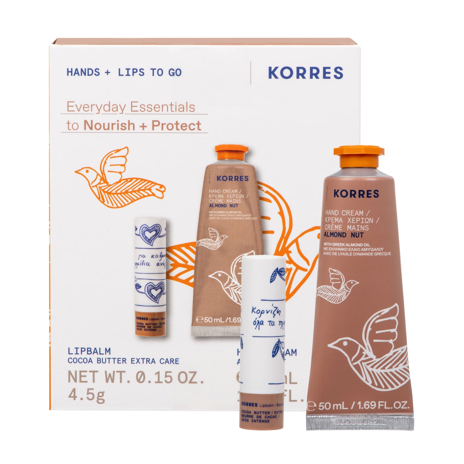 Ce coffret contient : Crème Mains Almond Nut (50ml) + Baume Lèvres Soin Intense Beurre de Cacao (4,5g).