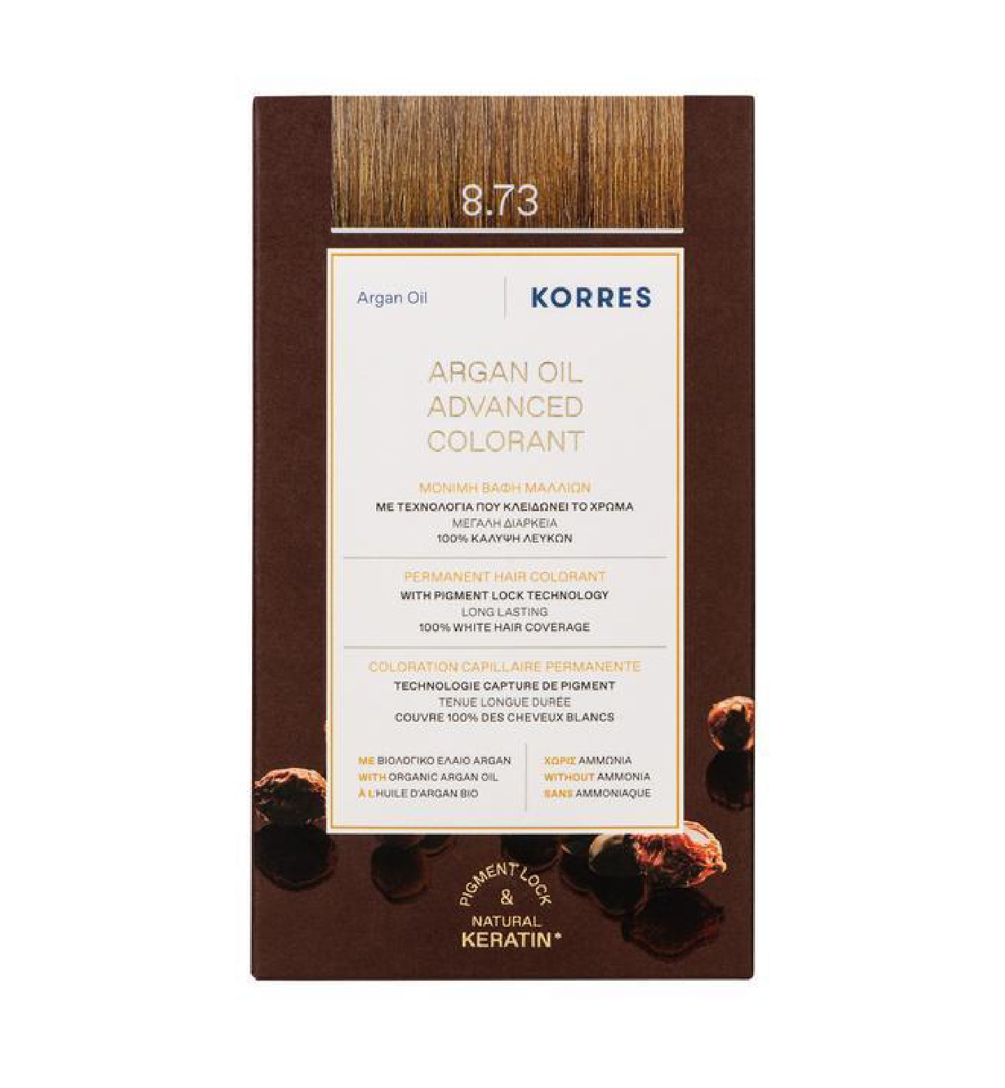 Coloration Permanente Huile d’Argan 8.73 Doré Caramel 145ml
