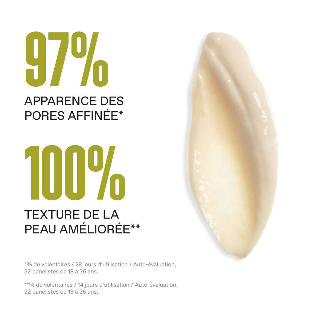 Crème-gel fraîche pour une peau « sans pores » + une hydratation équilibrée. Peaux mixtes à grasses. 97% affine l’apparence des pores*. 100% grain de peau lissé*.