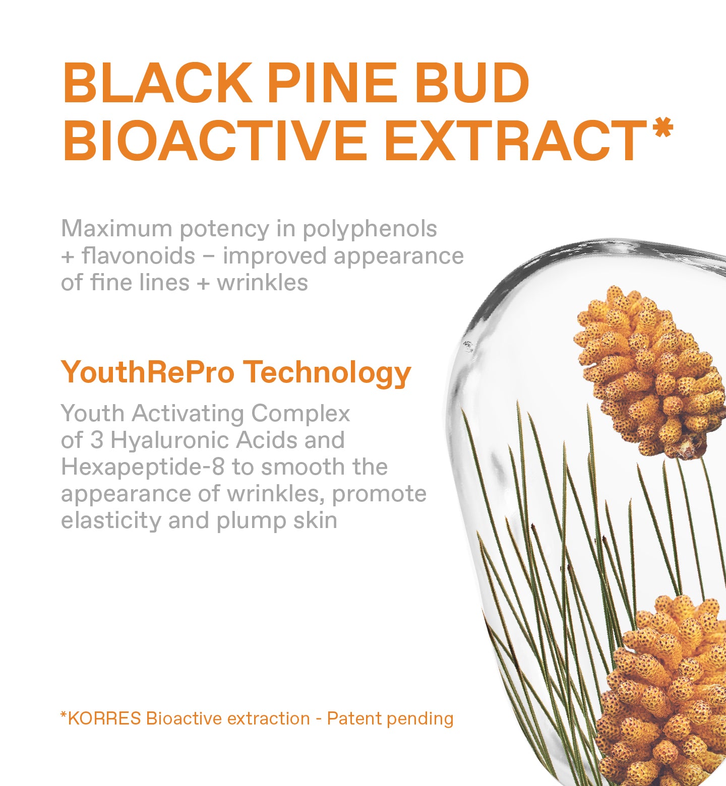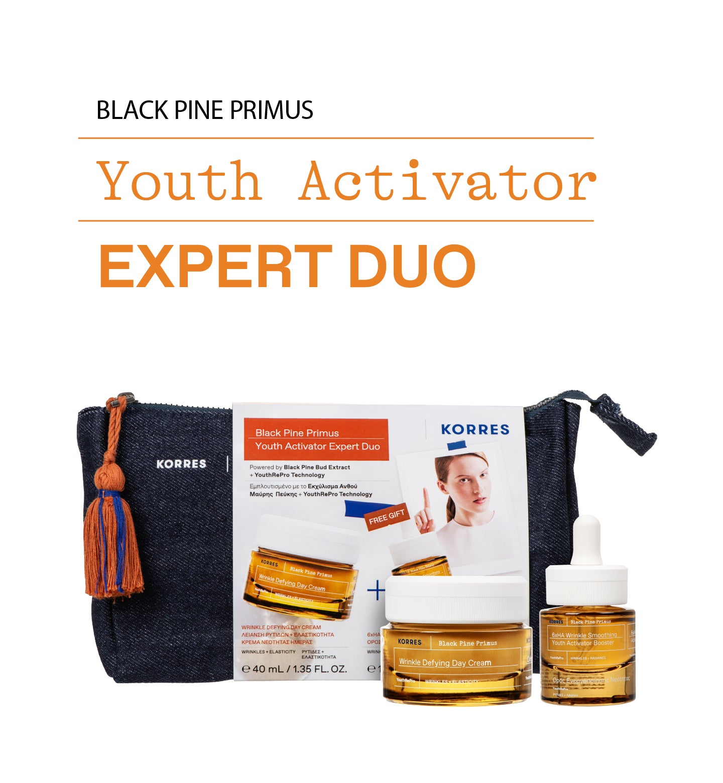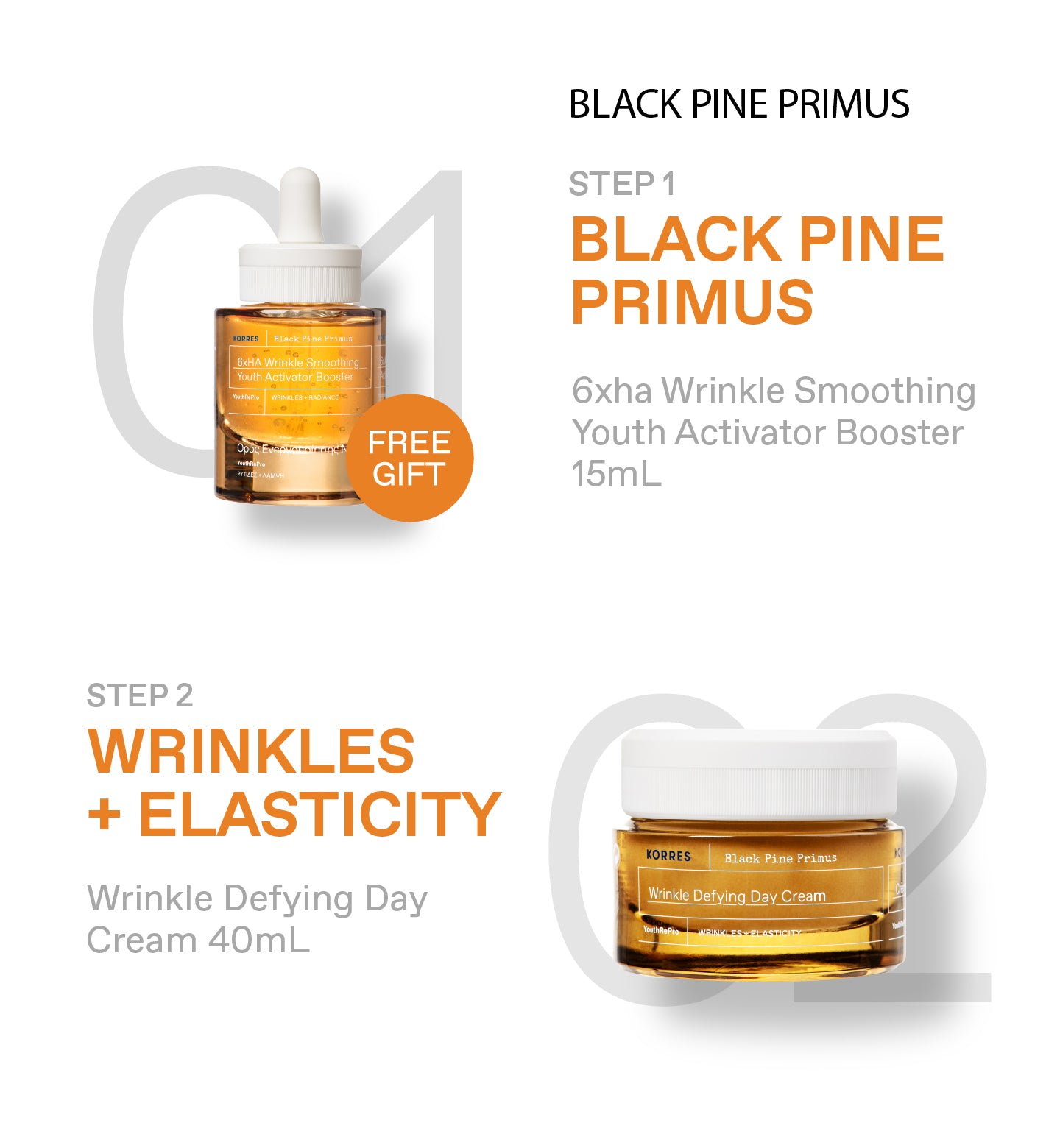 Notre innovation Pin Noir Primus en Duo Activateur Jeunesse enrichi en Extrait de Bourgeon de Pin Noir riche en puissants antioxydants + Technologie YouthRepro pour revitaliser, atténuer l’apparence des rides et repulper la peau. Dès 35 ans.