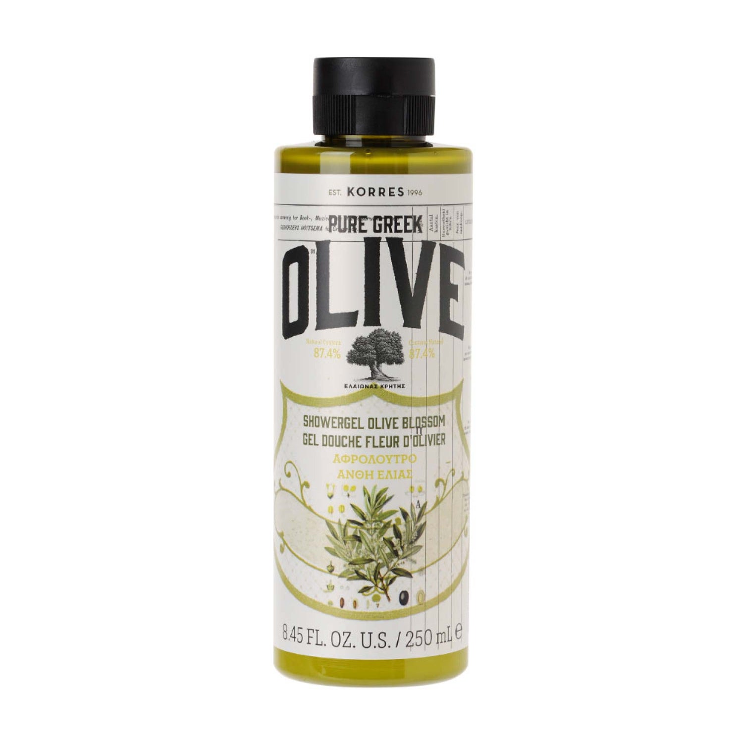 Gel Douche onctueux, enrichi en Extrait de Feuilles d'Olivier aux propriétés tonifiantes, nettoie en douceur. Aide à maintenir le niveau d'hydratation naturel de la peau.