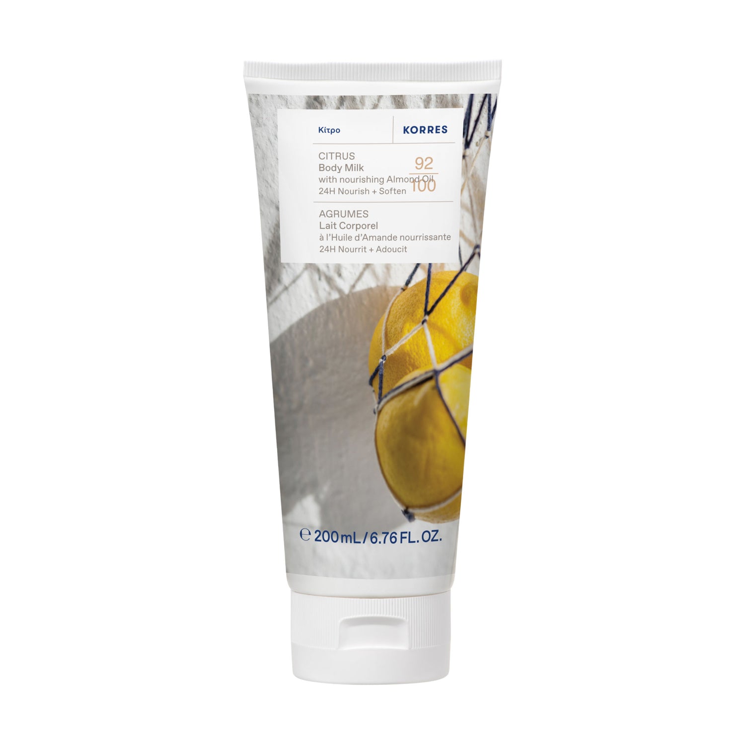 Lait corporel enrichi en Extrait d’Huile d’Amande Grecque aux propriétés hydratantes, nourrissantes et adoucissantes.