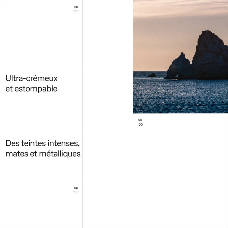 Infusés de Minéraux Volcaniques et d’Esters d’origine naturelle, des teintes mates et métalliques intenses et de couleur pure, pour créer des looks infinis.