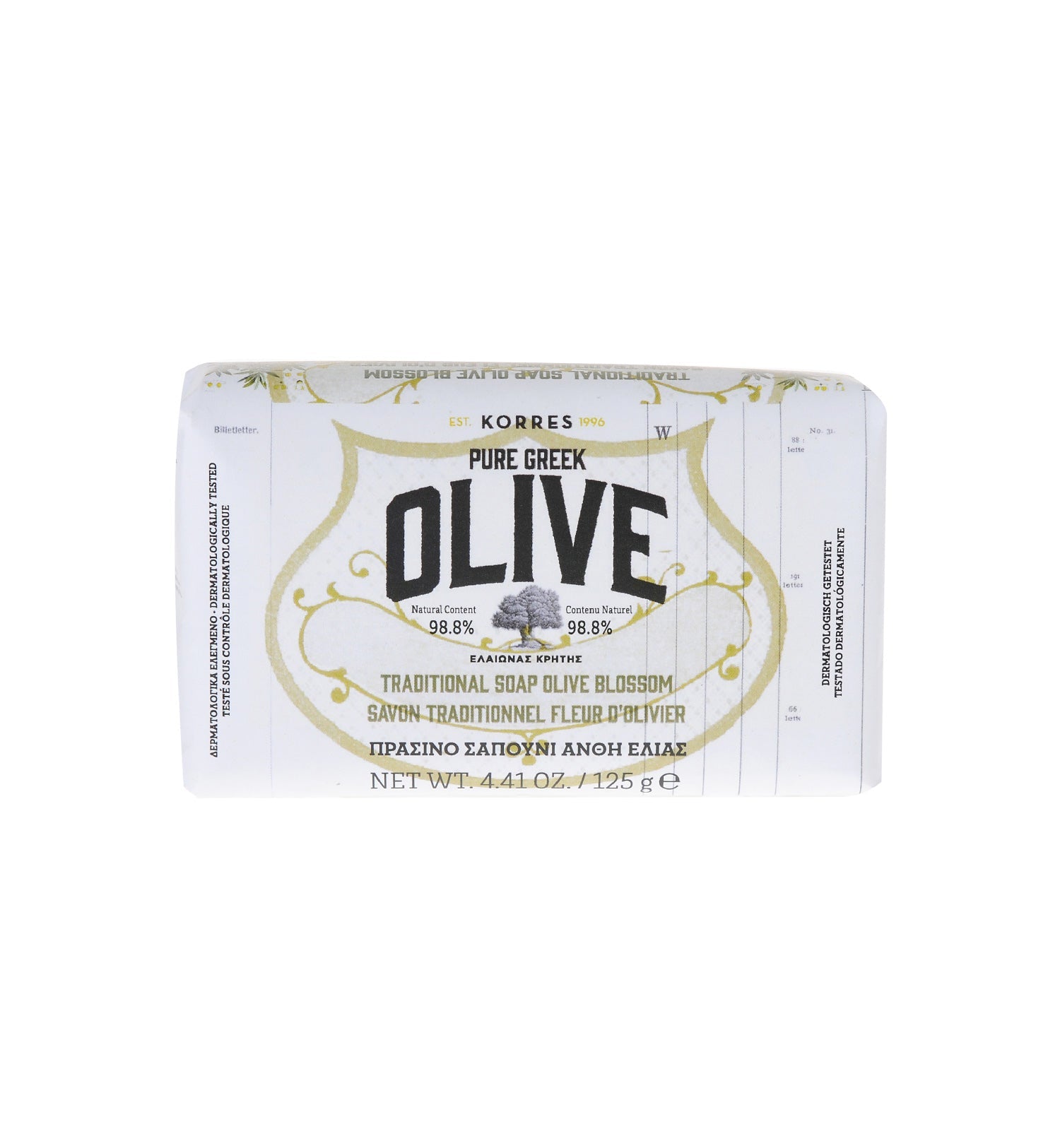 Pain de savon de fabrication traditionnelle, enrichi en Huile d’Olive Bio Extra-Vierge de Crète. Nettoie en douceur, procure souplesse et confort à la peau. 98,8% contenu d’origine naturelle.
