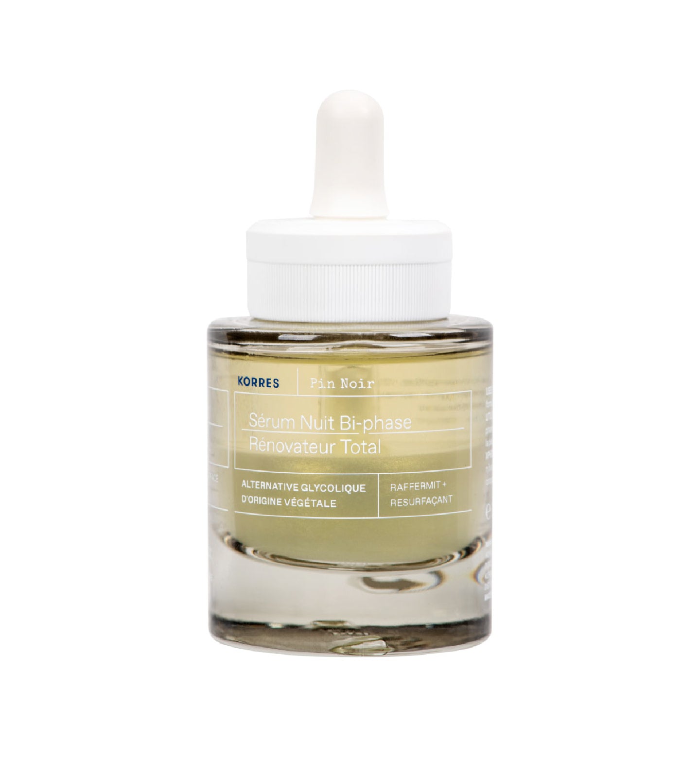 Sérum de nuit bi-phase pour resurfacer, lisser la peau, réduire l'apparence des rides + ridules.
