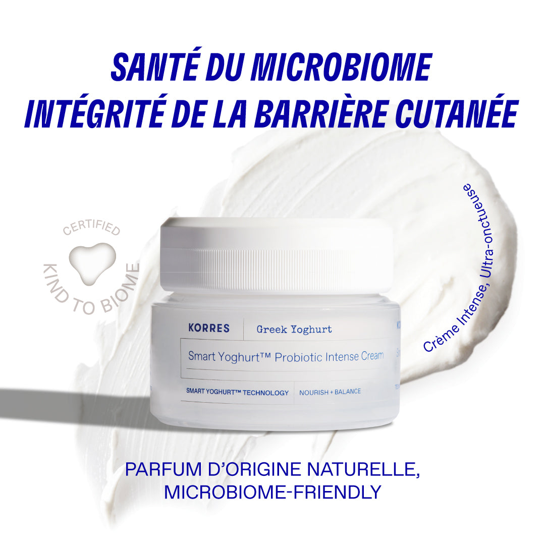Boostée par la Technologie SMART YOGHURT™, cette crème intense s’adapte aux divers besoins de la peau . Rééquilibre le microbiome stressé + fortifie la barrière cutanée. 100% Peau Plus Nourrie, Plus Équilibrée, Plus Confortable*.