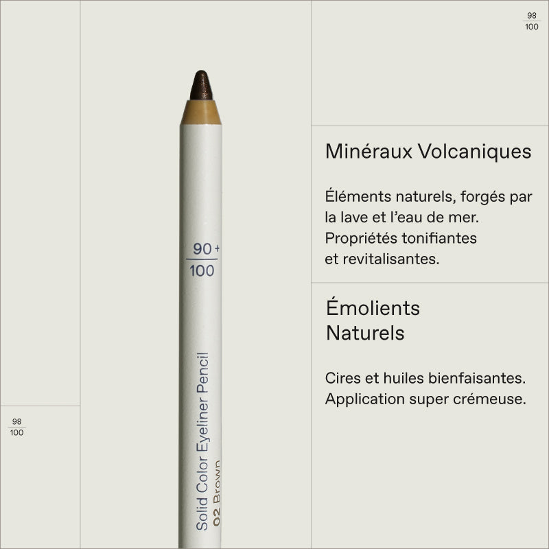 Crayon eyeliner crémeux haute définition en un seul geste, longue tenue. Infusé de Minéraux Volcaniques et d’Émollients Naturels pour une tenue douce et confortable tout...