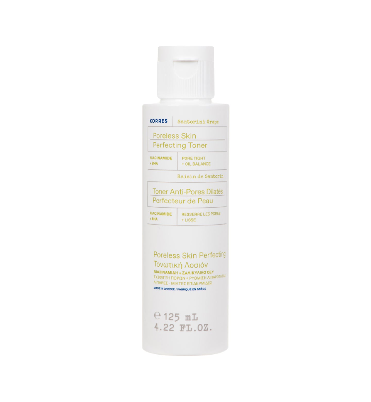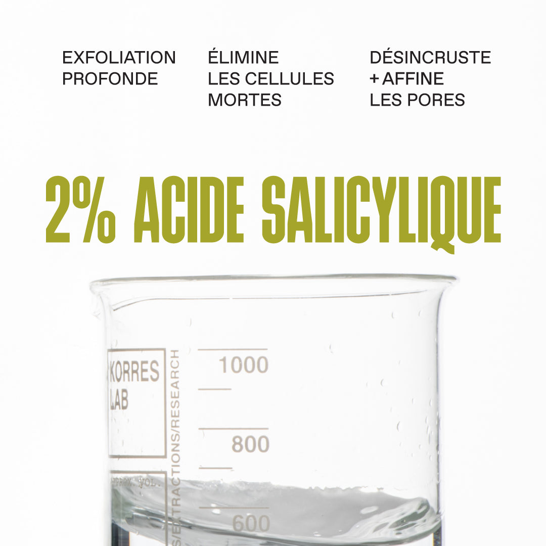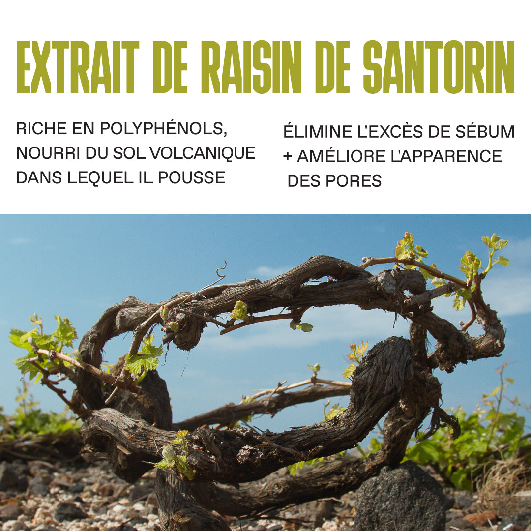 Lotion exfoliante qui resserre les pores dilatés, élimine l’excès de sébum et cible les imperfections. Extrait de Raisin de Santorin + 2% Acide Salicylique + Niacinamide. Pour les peaux mixtes à grasses.