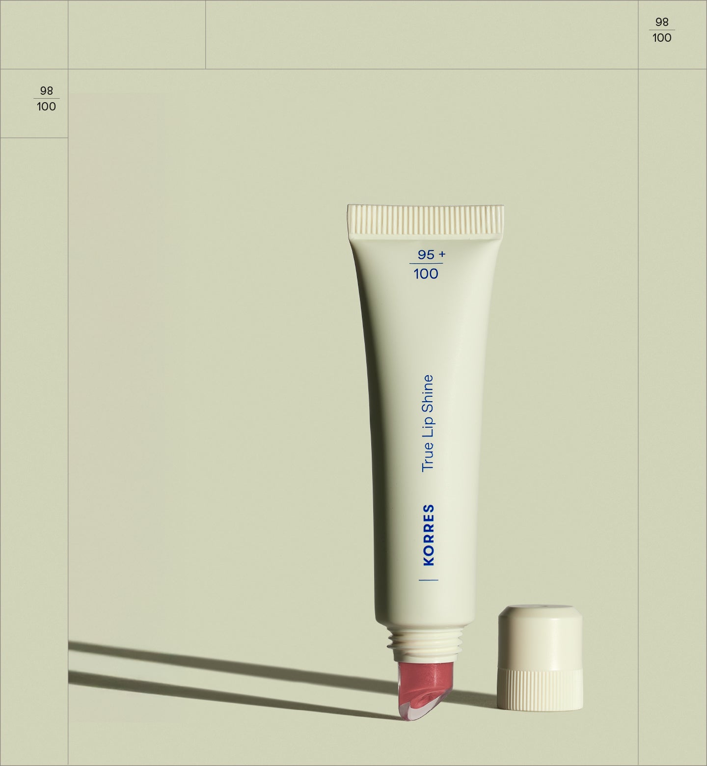 Astuce de Sophia KORRES Make-up Artist : pour un effet lèvres pulpeuses, déposez une touche de True Lip Shine uniquement au centre des lèvres.
