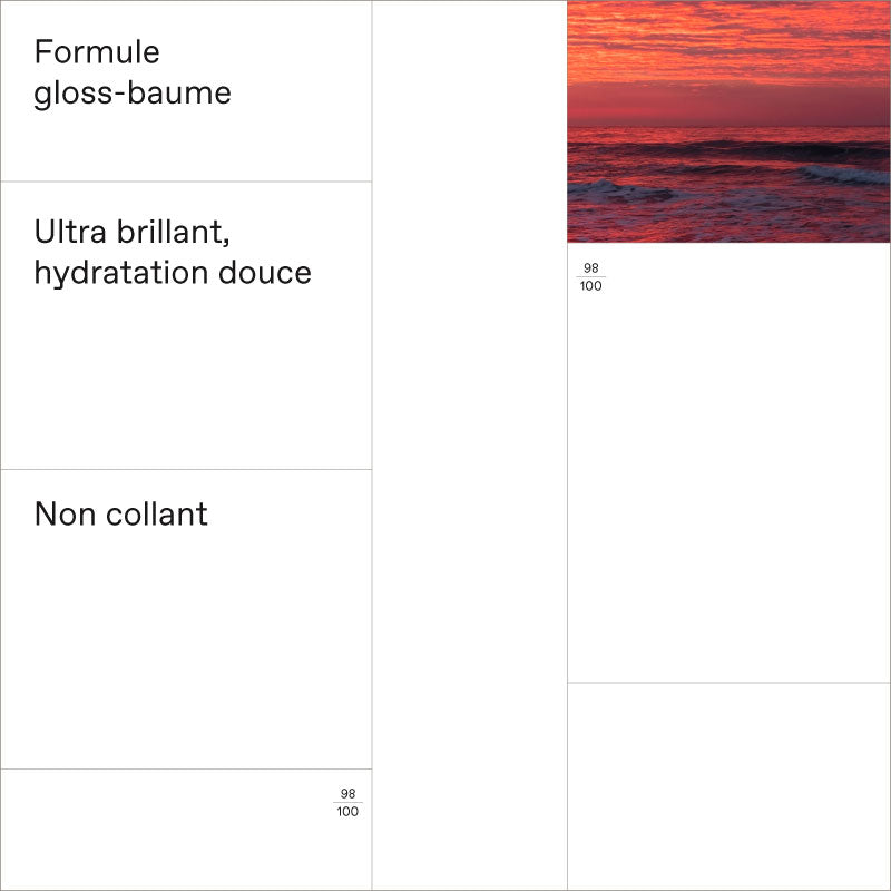 Une formule hybride : le glossy d'un brillant à lèvres et l'hydratation et la nutrition d'une huile pour les lèvres.