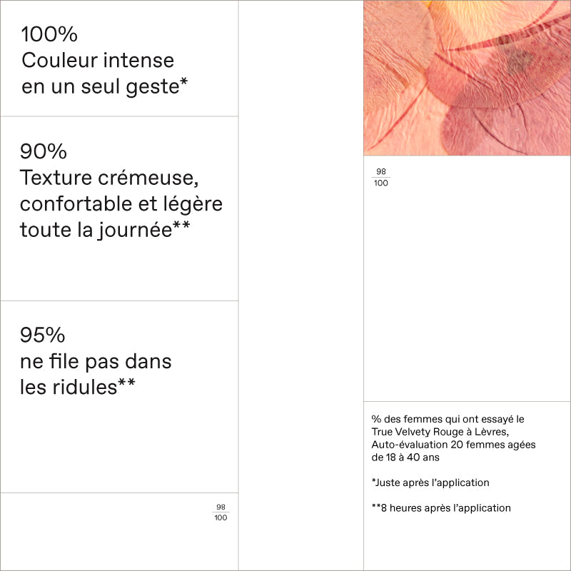 90% Fini crémeux, confortable et léger toute la journée** 95% Ne migre pas dans les lignes*
