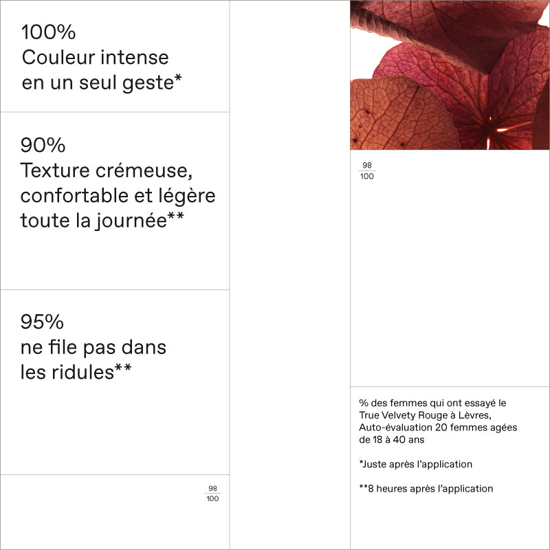 90% Fini crémeux, confortable et léger toute la journée** 95% Ne migre pas dans les lignes*