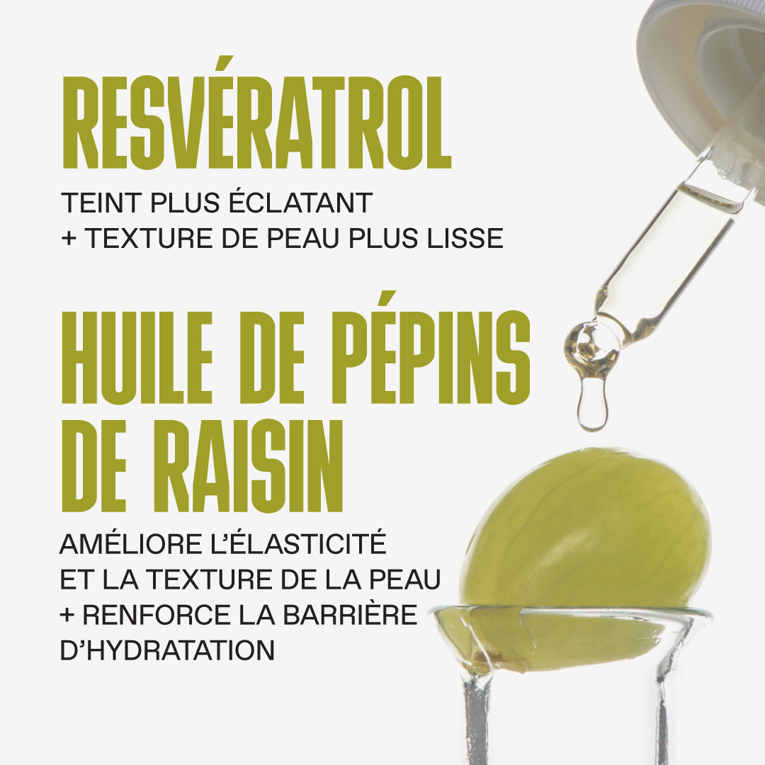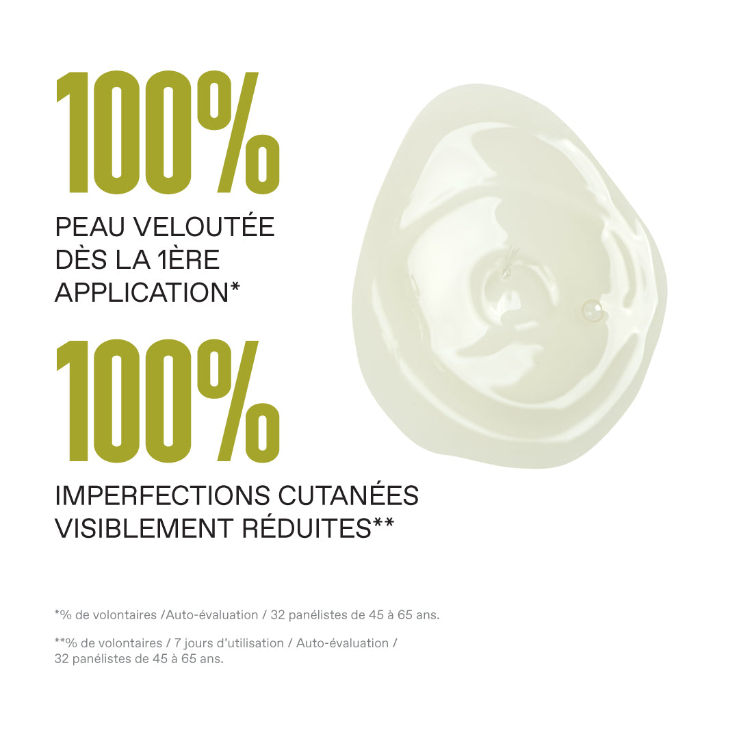 Pour lisser les imperfections : 100% effet Peau de Velours*. 94% peau plus souple, plus lumineuse et plus résiliente**. 81% peau si belle que vous n’aurez pas besoin de maquillage***.