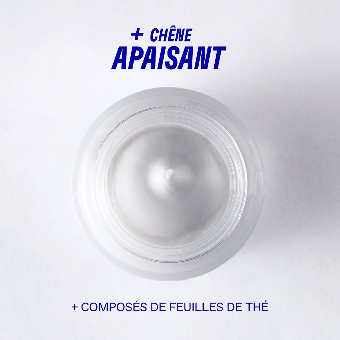 - Composés Actifs de Chêne + Feuilles de Thé - Un mélange apaisant pour les peaux déshydratées et sensibles, cliniquement prouvé pour équilibrer et restaurer la peau.