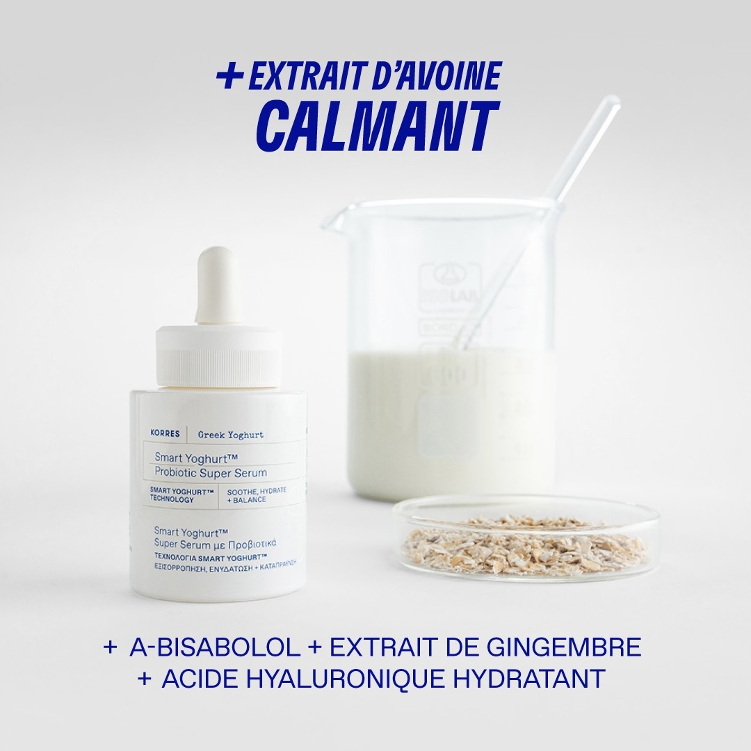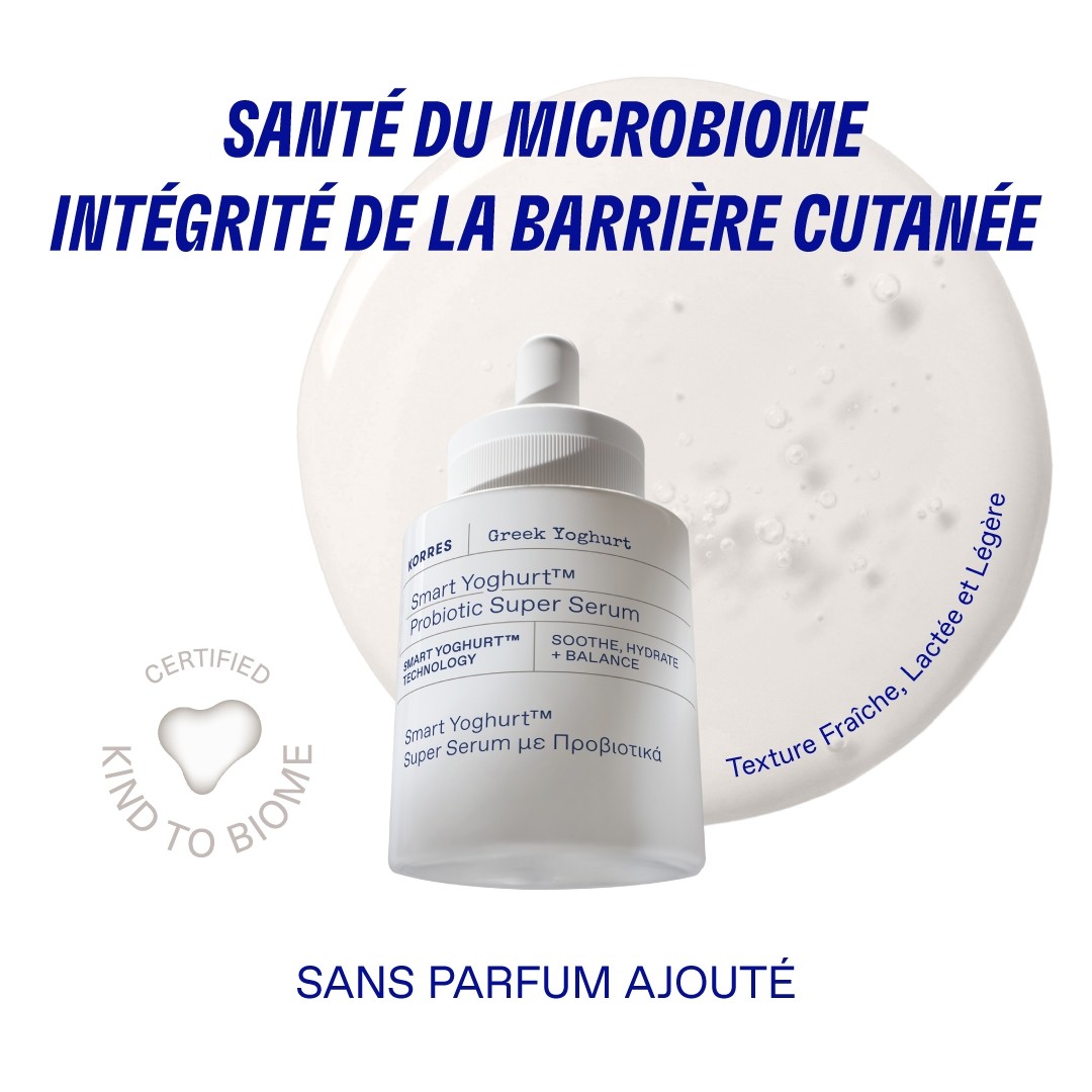 - Technologie SMART YOGHURT™ - Une technologie de pointe, développée par KORRES, composée de véritable Yaourt Grec associé à des extraits Pré et Probiotiques, du lait d’Avoine et des nutriments d’Algues Marines. Conçue pour s'adapter aux besoins variés de la peau en rétablissant l'équilibre du microbiome stressé et en fortifiant la barrière cutanée.